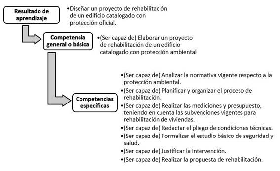 Un resultado de aprendizaje evidencia el desarrollo de competencias generales o básicas que, a su vez, al profundizarlas se identifican competencias más específicas. Estas se alcanzan progresivamente y deben demostrarse en evidencias y/o acciones. Tal y como se ejemplifica en el grafico 2.
